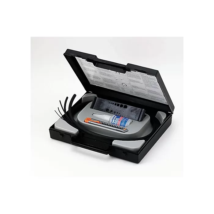 Kit de réparation d'urgence – contient des cordes en caoutchouc, du LOCTITE 406 et les outils pour créer des joints toriques adaptés aux besoins.